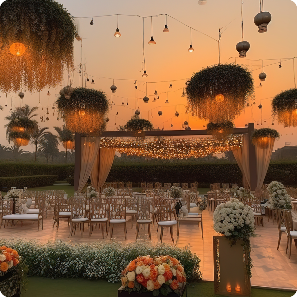 Located in the serene surroundings of South Bopal, Ahmedabad, Vivianna Farm is a premier open-air event venue designed to bring your grandest visions to life. Away from the city’s hustle, our lush green lawns offer a picturesque canvas for luxury weddings, corporate galas, and milestone celebrations. With premium amenities and an expansive capacity, we ensure every detail of your special day is flawless.